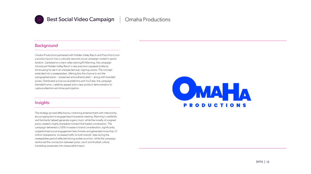 This year’s winners highlight how brands are reshaping video and TV through storytelling, collaboration and technology. Campaigns leaned into emotional narratives and creator partnerships to build deeper audience connections, while advances in ad tech and other emerging tools enabled more seamless integration with content. Across platforms, social video played a central role in driving engagement and reach. Together, these efforts reflect an industry evolving toward more immersive, participatory and technologically driven storytelling.