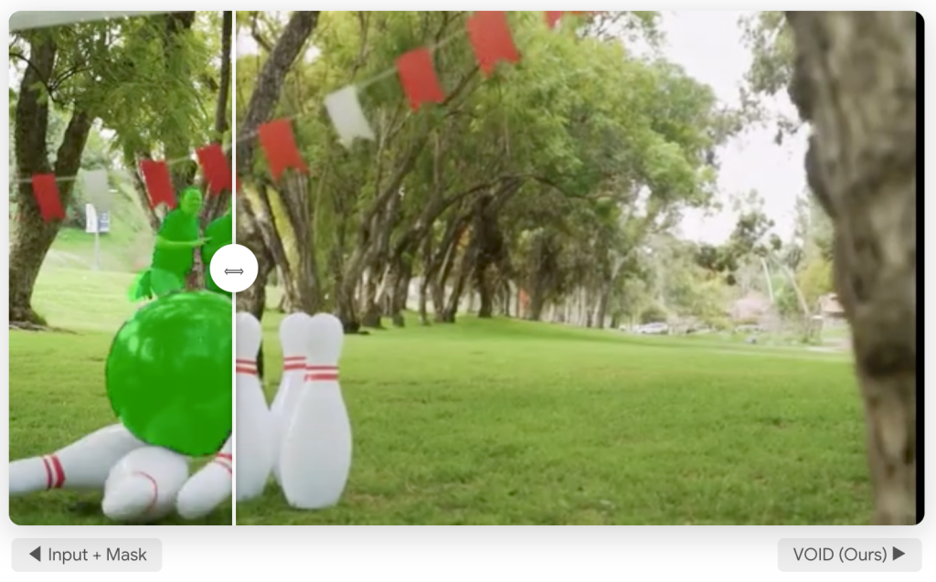 As the team behind VOID wrote in a research paper about the tool, “Void [sic] does not just recall simple visual cues from its training data, but applies high-level reasoning and world knowledge from the VLM [vision-language model] and underlying video diffusion model to video editing. As such, it is likely to benefit as more capable generative models become available.”