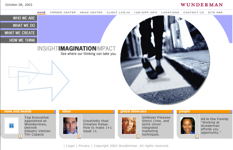 Wunderman’s 2003 site wasn’t exactly showy, but it was content-rich. It’s current online home isn’t that different and pulls in a range of social content.