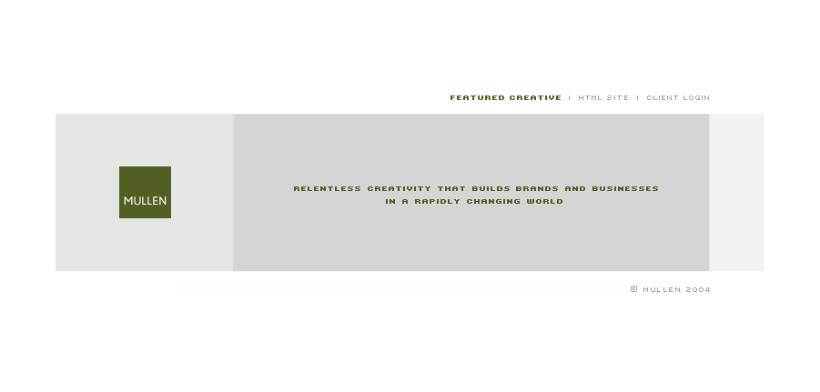 Mullen’s 2004 Flash site was extremely basic. It featured examples of its creative, and that was about it. Today’s HTML5-based interactive site is worlds apart.