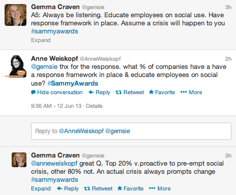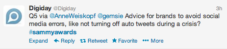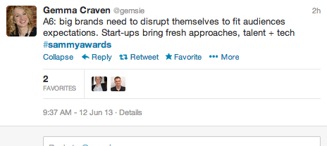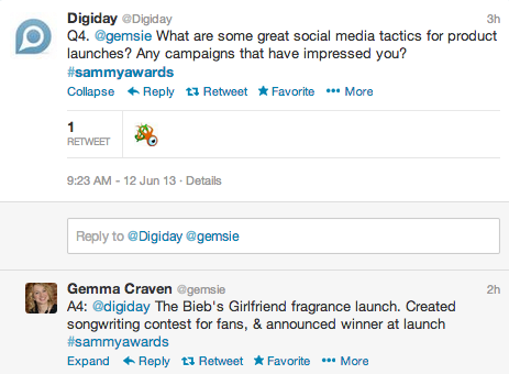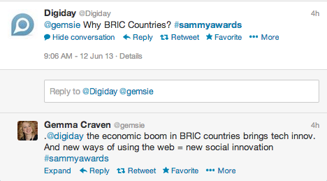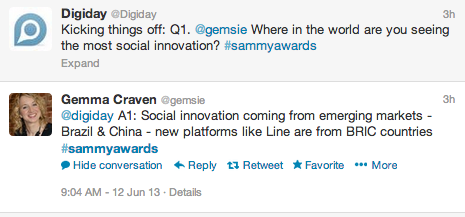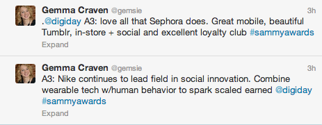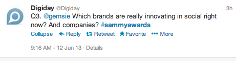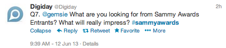 Yesterday, Gemma Craven, evp and New York group director of Social@Ogilvy and a member of the Digiday Sammy Awards judging panel, answered your questions during a live Q&A via Twitter.