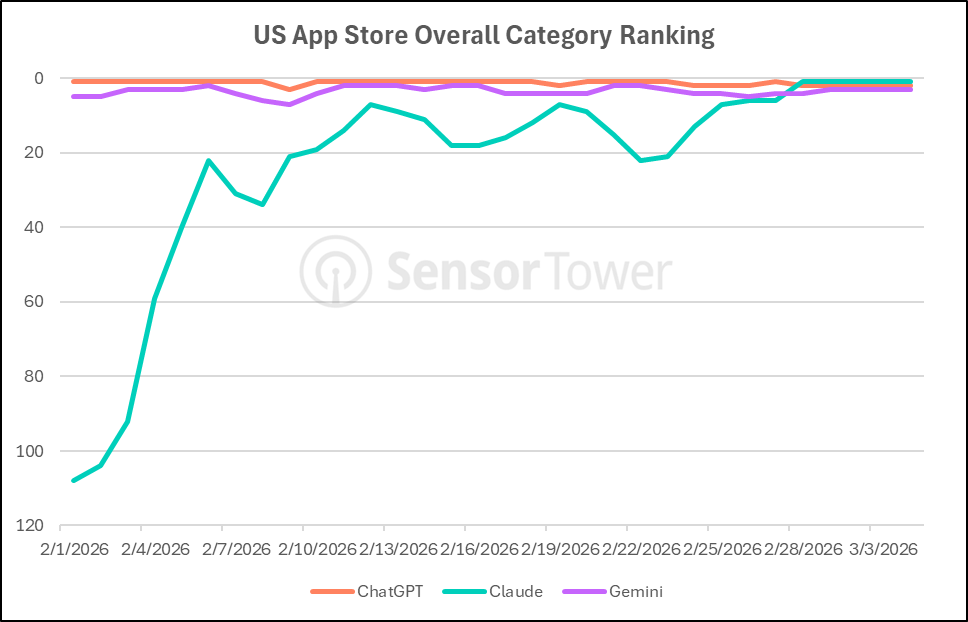 This sharp contrast suggests that users often signal their preferences through action — and in this case, many appear to have shifted toward Claude.