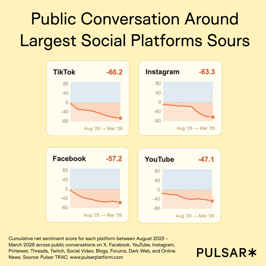 According to Pulsar, which tracked sentiment of the major platforms between July 2025 and March 2026, public conversation soured.