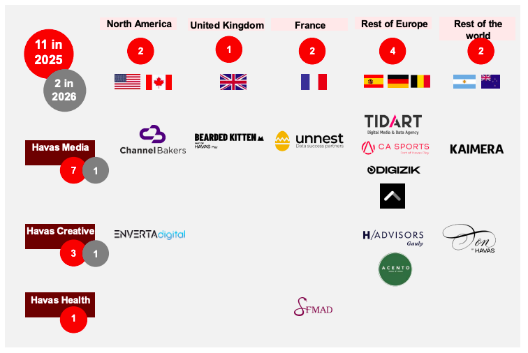But the industry’s biggest players are still prepared to grow through acquisition. Havas, for example, only recently a public company, has already brought two companies into the fold this year and acquired 11 in 2025. And Publicis hasn’t been far behind, having bought several agencies and tech companies over the last three years.