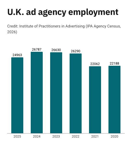 At least some of that is in response to AI; 24% of British agencies expect to cut staff this year as a result of the technology, according to the IPA’s annual Census study.