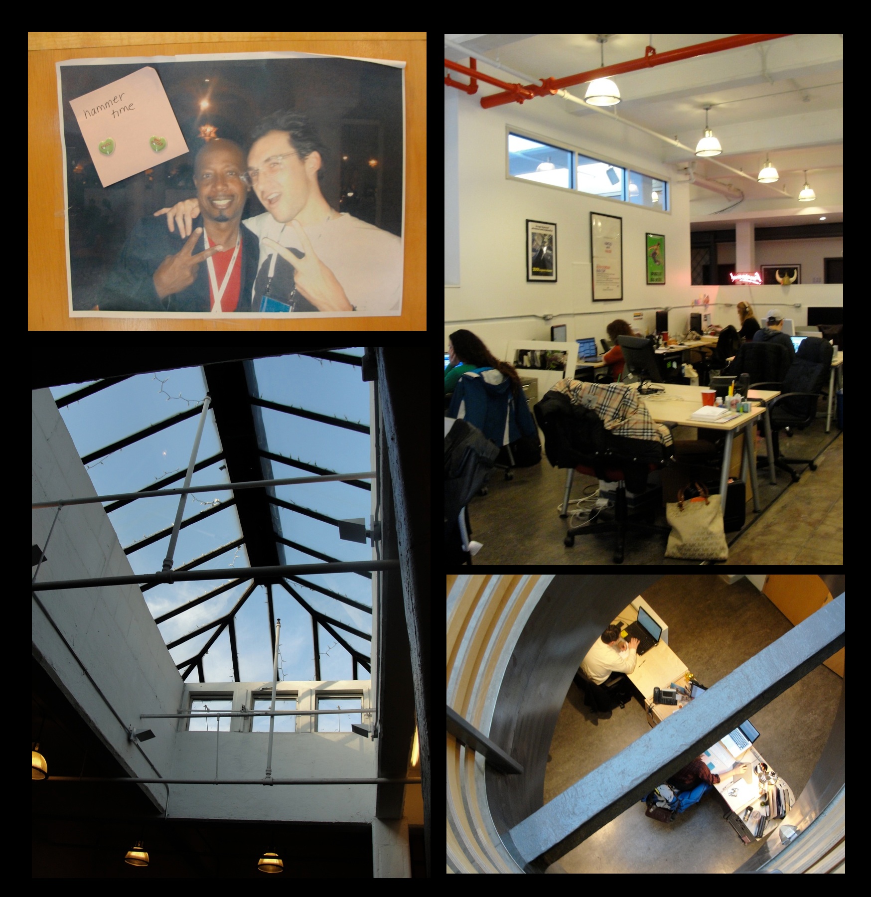 (Ben Palmer with MC Hammer, open-plan workspace areas,)