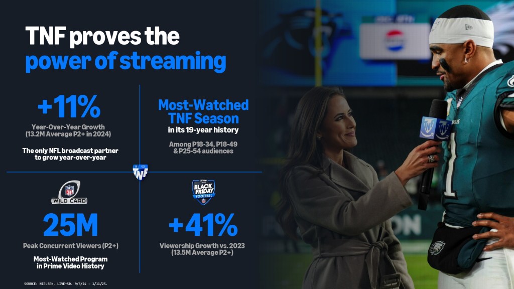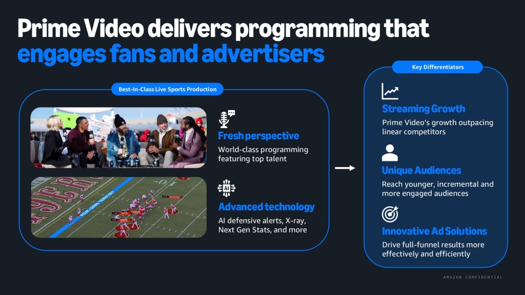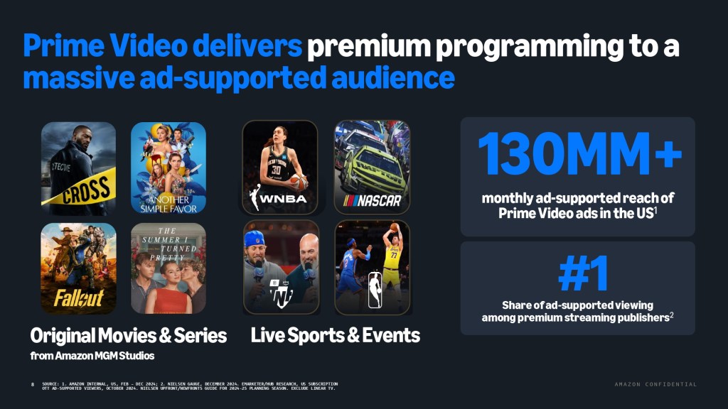 The platform has framed its CTV proposition as performance infrastructure with closed-loop attribution and full-funnel optimization, ultimately connecting ads to outcomes. And its live sports and Prime Video offerings help to scale that model, by providing advertisers with access to Amazon’s highly engaged audiences.