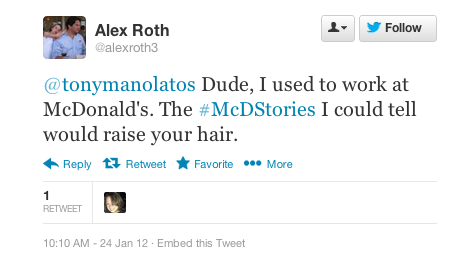 In January, McDonald’s rolled out a campaign that centered on the #McDStories hashtag. The brand was asking people to share their favorite McDonald’s memories on Twitter. But the hashtag was more of bashtag. Twitter users shared stories like, “The last time I ate a McFish I vomited for an hour.”