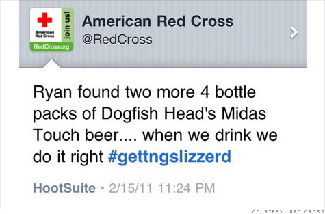 When a Red Cross employee accidentally tweeted from the company account rather than her personal account about drinking Dogfish Head beer and getting drunk, she did the right thing and immediately tweeted to clear up the situation: “Rogue tweet frm @RedCross due to my inability to use hootsuite… I wasn’t actually #gettingslizzard but just excited! #howembarassing.” Red Cross similarly acted in good taste and with a touch of humor by tweeting, “We’ve deleted the rogue tweet but rest assured the Red Cross is sober and we’ve confiscated the keys.” Red Cross already did a good job of handling the situation, but they got some help from Dogfish Head. The beer brand and its fans turned the #gettingslizzard into a fundraising campaign for Red Cross.