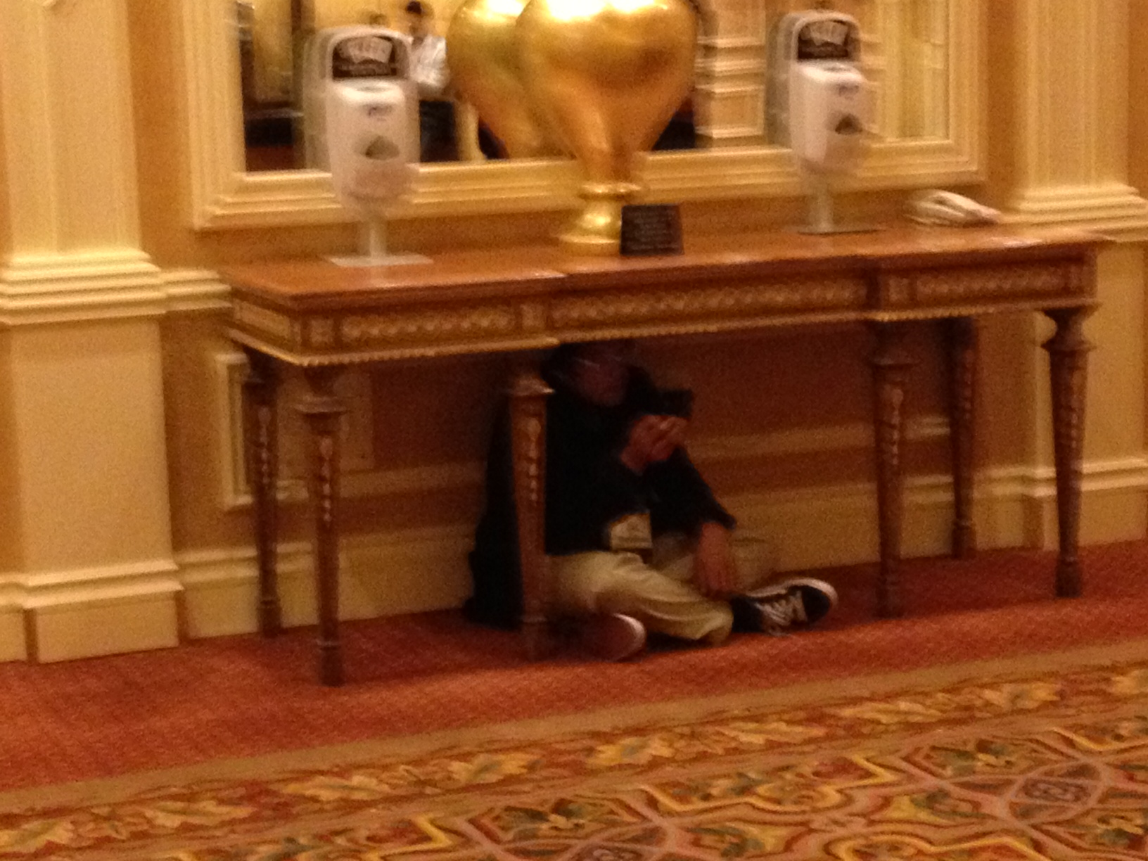 This man hid under a table: